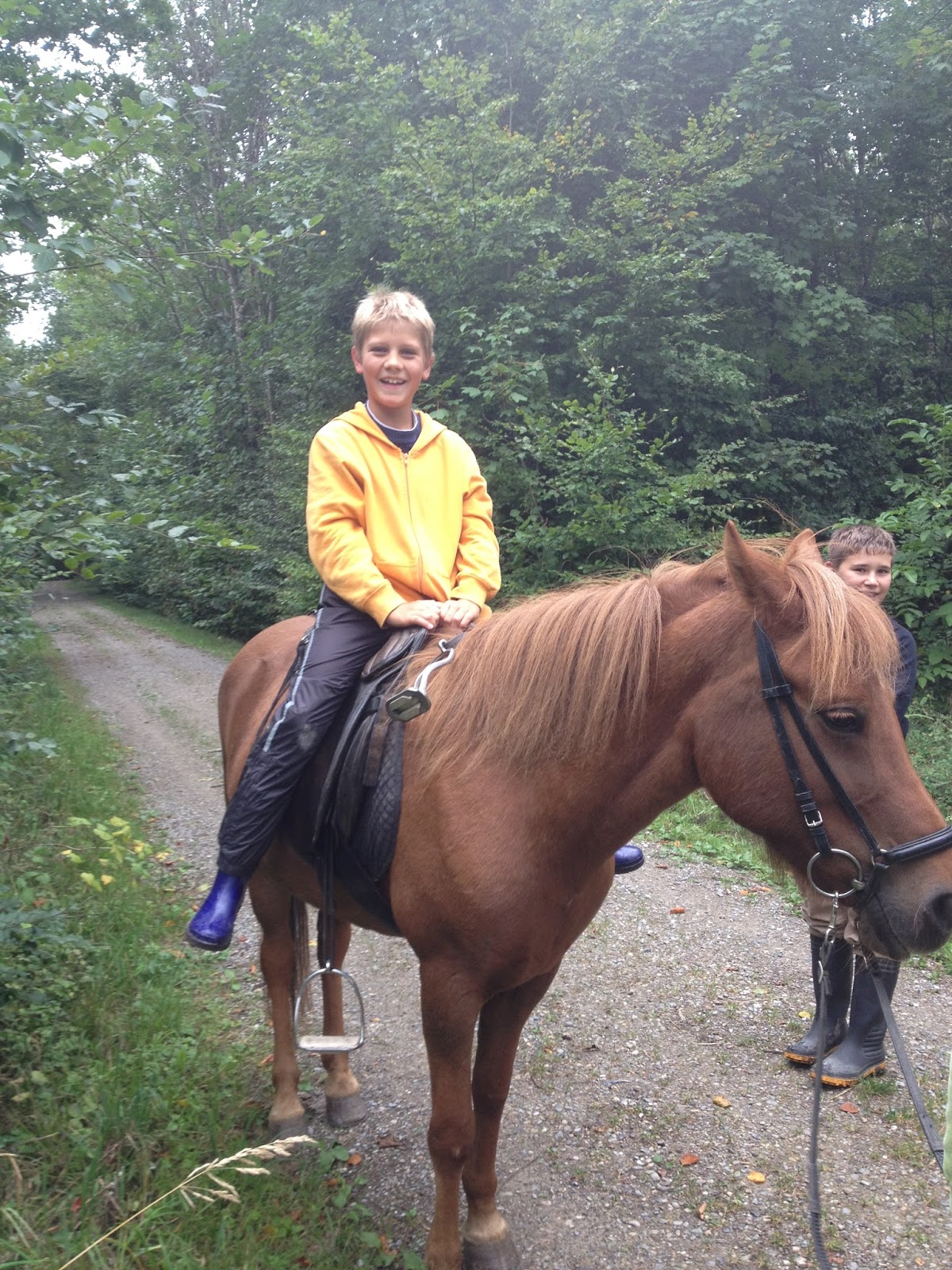 In der Zwischenzeit tauchte Andrea, Gabis Tochter, mit zwei Pferden auf, und wer die Einladung aufmerksam gelesen hatte, wusste, dass nun ein kleiner Ausflug zu anderen Weihern bevorstand, wo es noch immer Gelbbauchunken zu sehen gibt - natürlich hoch zu Ross! :-)